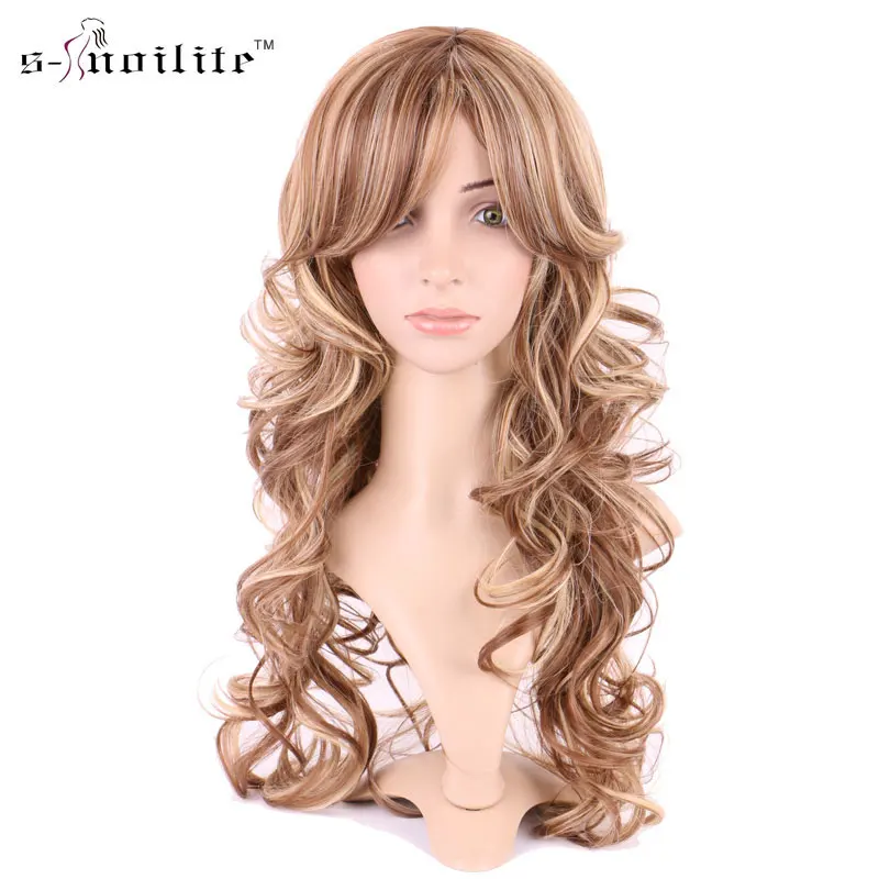Check Price SNOILITE Women Synthetic Body Wave Daily Full Wigs Long Wig Ladies Cosplay Party Real Natural For Human Streak Dark Brown Blonde body-wave This instant