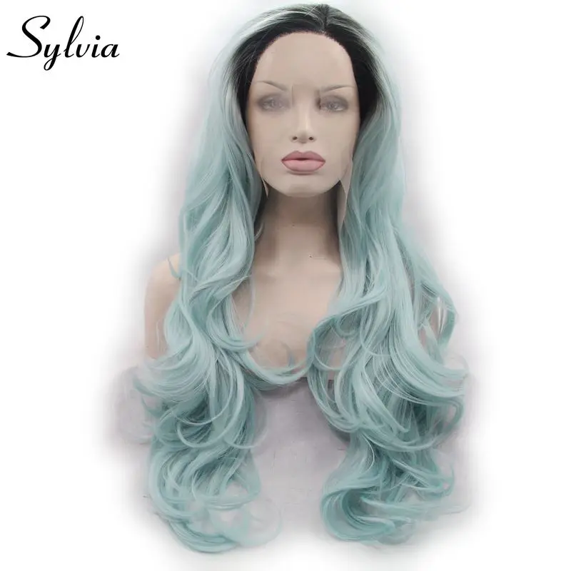 Check Price sylvia body wave black to mixed light green 2Tombre synthetic lace front wig dark root glueless heat resistant fiber woman hair body-wave Information