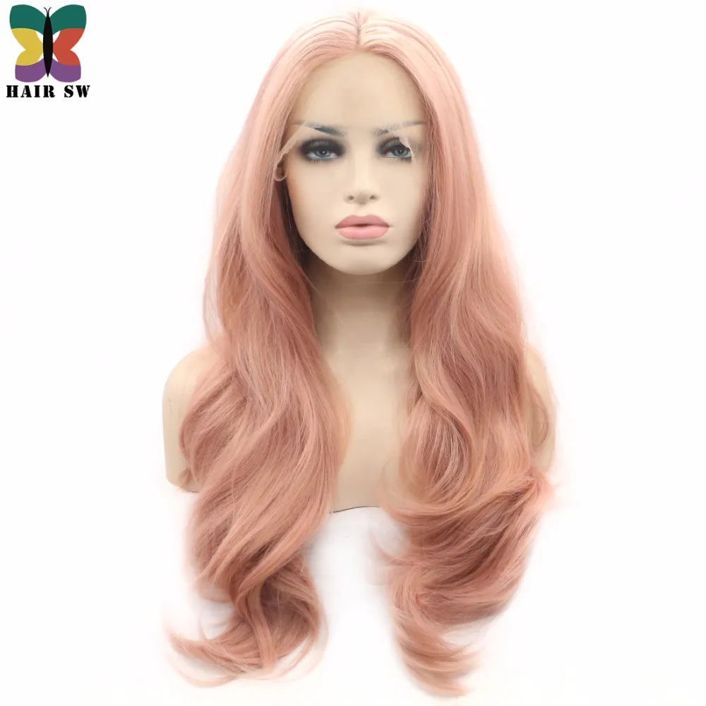HAIR SW Long Body Wave Lace Front wigs Peach Pink Synthetic Glueless Natural Hairline Heat Resistant Wigs For Women 26" body-wave