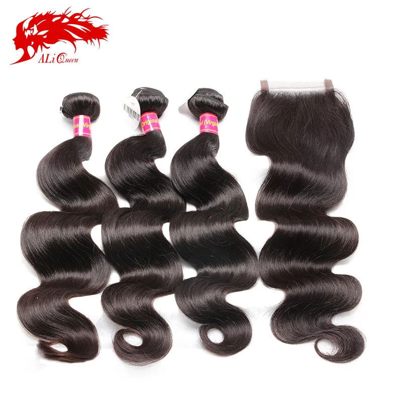 Ali Queen Hair Products Brazilian Body Wave Virgin Human Hair 2/3 Bundles With 4*4 Lace Closure Free Shipping body-wave