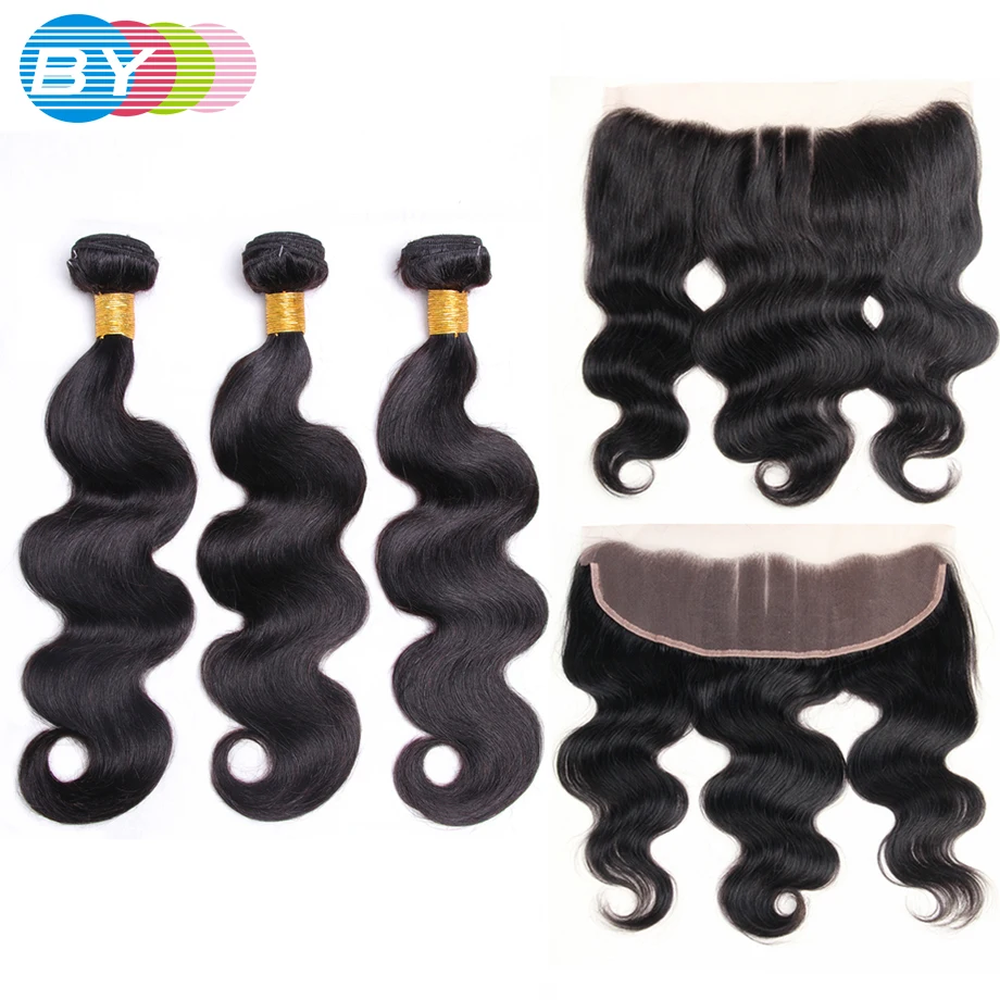 Check Price BY Pre-Colored Non-remy Human Hair Weave Natural Color Peruvian Body Wave 3 Bundles With 13x4 Lace Fraontal Closure Three Part body-wave Low Price