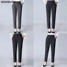 Missmeow Casual High Waist Pencil Pants Women Striped Straight Harem Pants Women Elastic Black/Office Pants Plus Size Trousers Pants