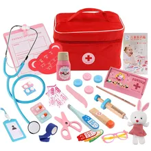 Do not wait Baby Red Pretend Play Wood Doctor Toys Medical Kit Dentist Medicine Box Sets Cloth Bag Packing Games Baby Gift Pretend Play Latest price