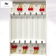 Quick hurry 6pcs Handmade glass Cherry design decor long handle glass cocktail stirring rod drink stirrers Swizzle Sticks Coffee Muddler Kitchen